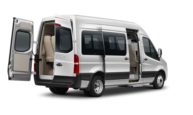 - أبواب خلفية متقابلة + باب منزلق للركاب